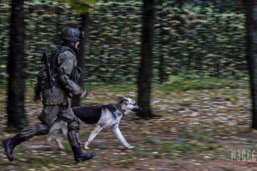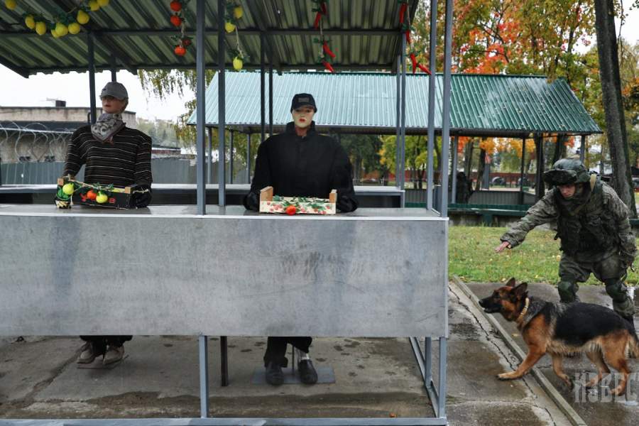 Сотрудник противоминного центра во время демонстрации подготовки служебных собак