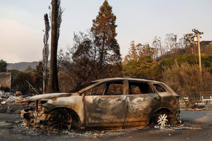 Сожженный автомобиль в долине Напа, Калифорния