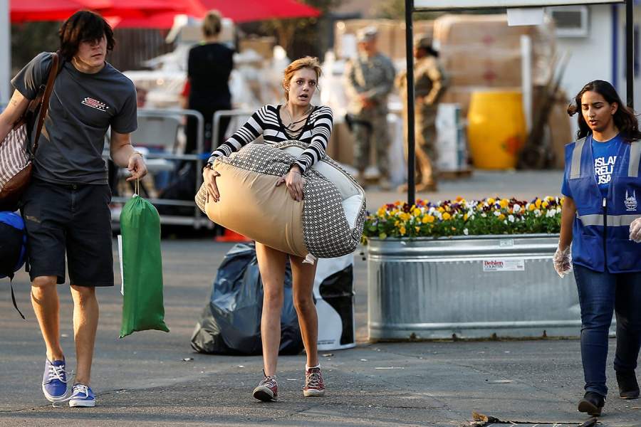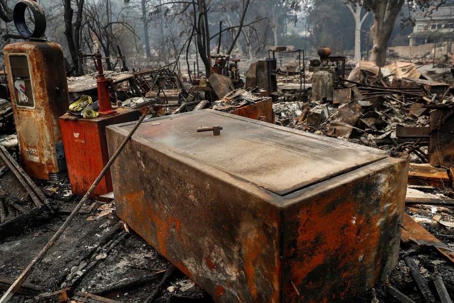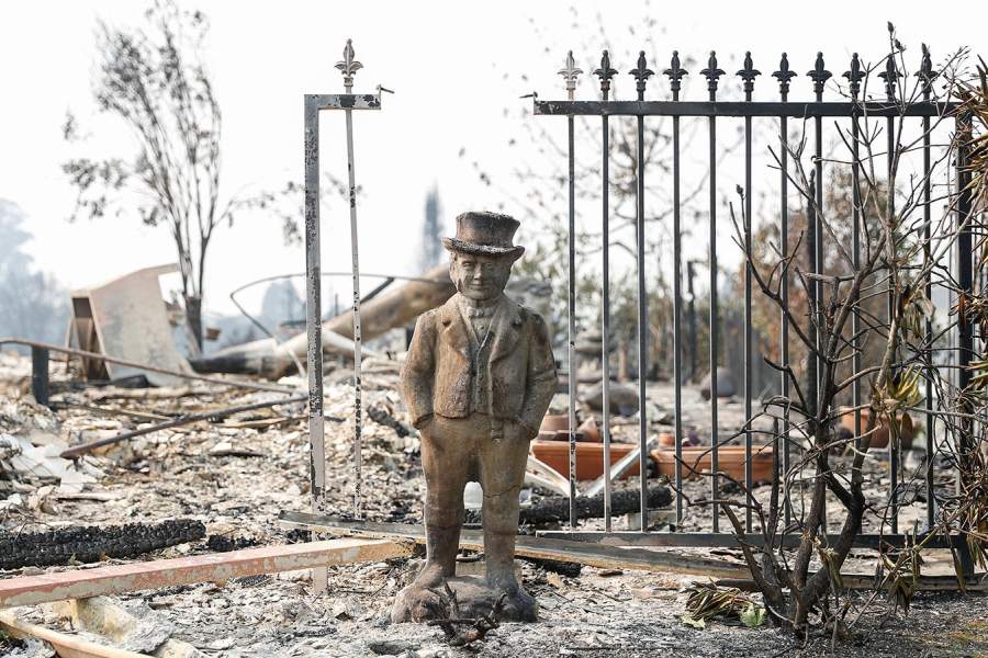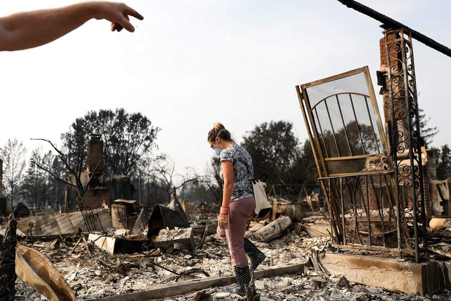 Пожары разрушили около 3,5 тыс. зданий, свои дома вынуждены были покинуть 25 тыс. человек. На фото: девушка ходит по развалинам своего сгоревшего дома, Санта-Роза, Калифорния