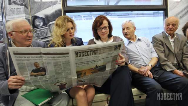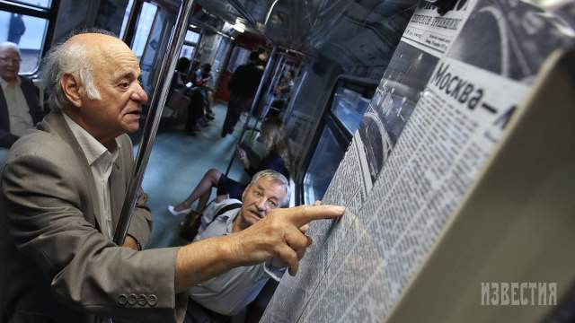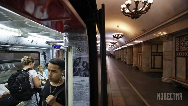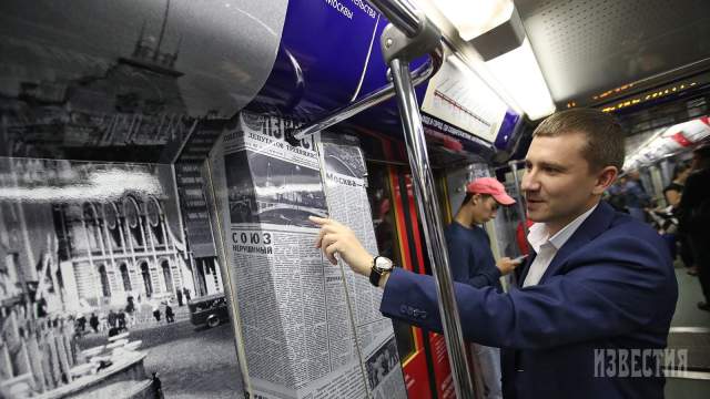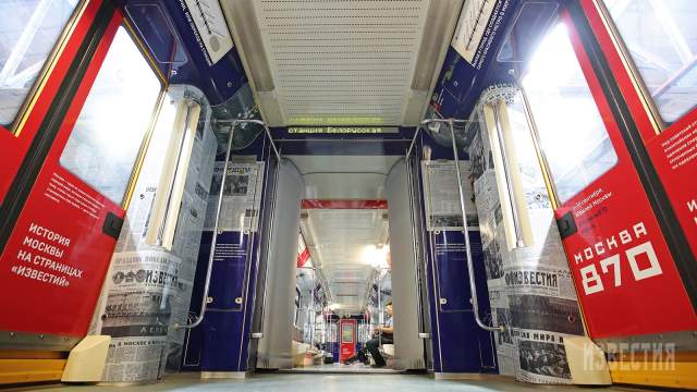 Как ранее сообщал портал iz.ru, на кольцевой линии столичной подземки начал курсировать тематический поезд «Москва-870». Один из вагонов состава украшен уникальными фотографиями и публикациями из газеты «Известия».