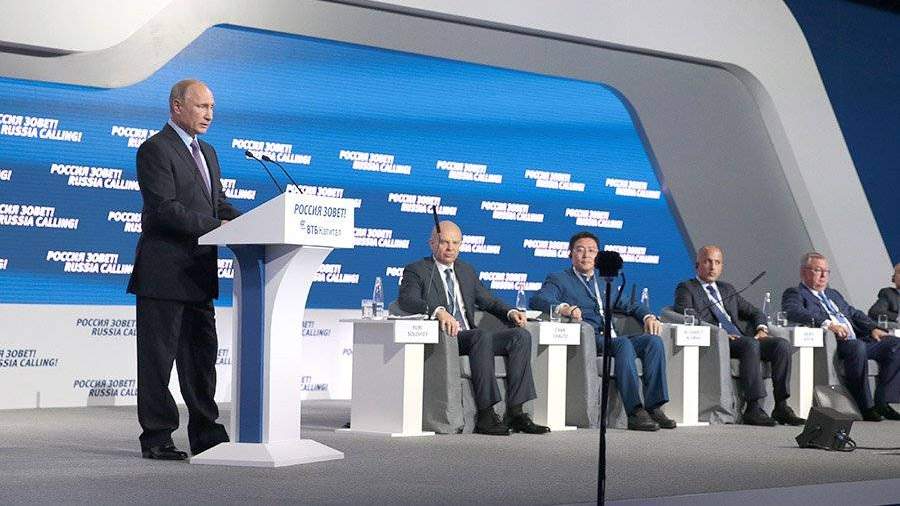 «Россия открывает такие возможности для сотрудничества, особенно сейчас, когда наша экономика вышла из стагнации, а ее оживление приобрело устойчивый характер. Так, объем валового внутреннего продукта растет четыре квартала подряд... со II квартала текущего года темпы превышают 2%», — сказал Путин, комментируя широкое представительство участников форума в этом году.