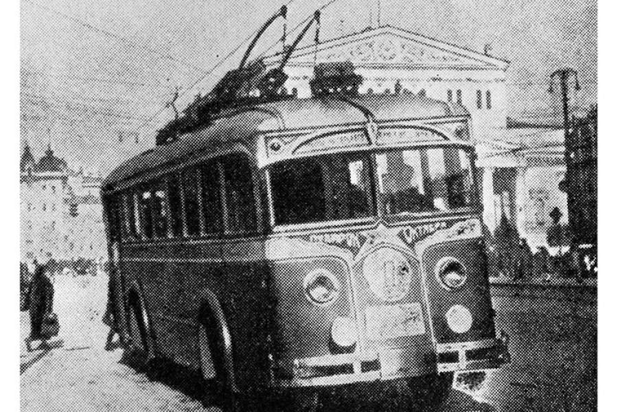 15 ноября 1933 года в Москве открылось регулярное движение троллейбусов. На фото: первый московский троллейбус, 1933 год