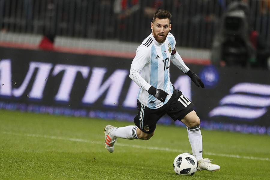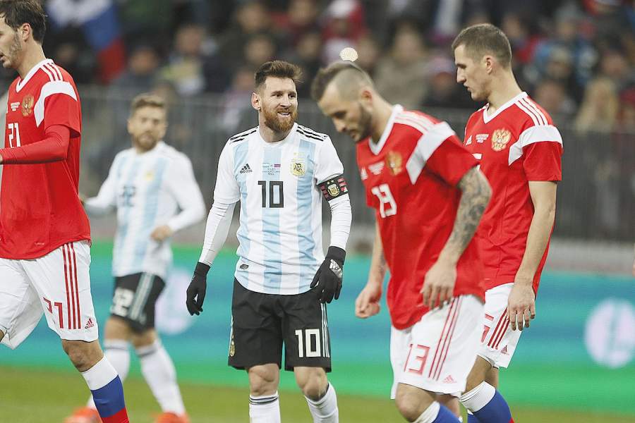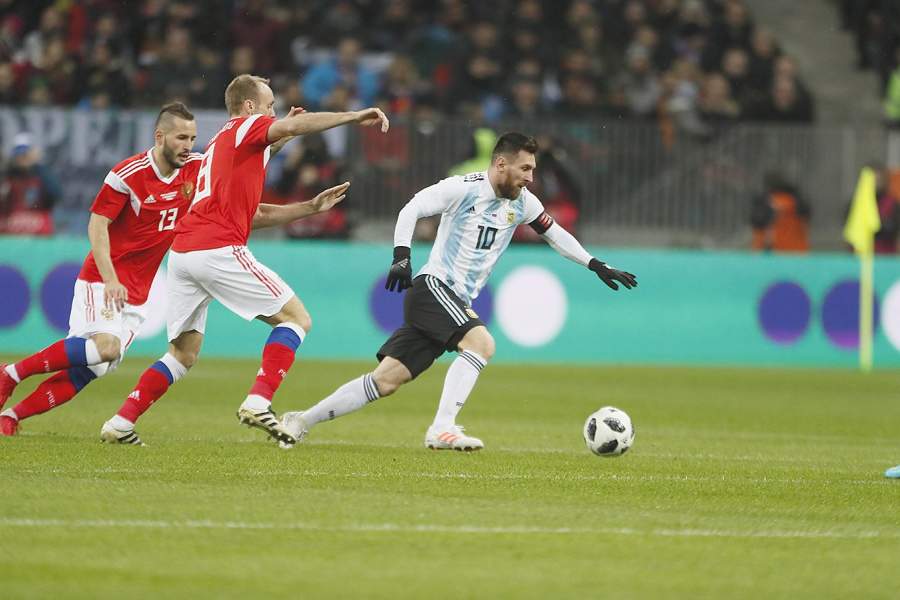 Лионель Месси во время матча между сборными России и Аргентины в Москве