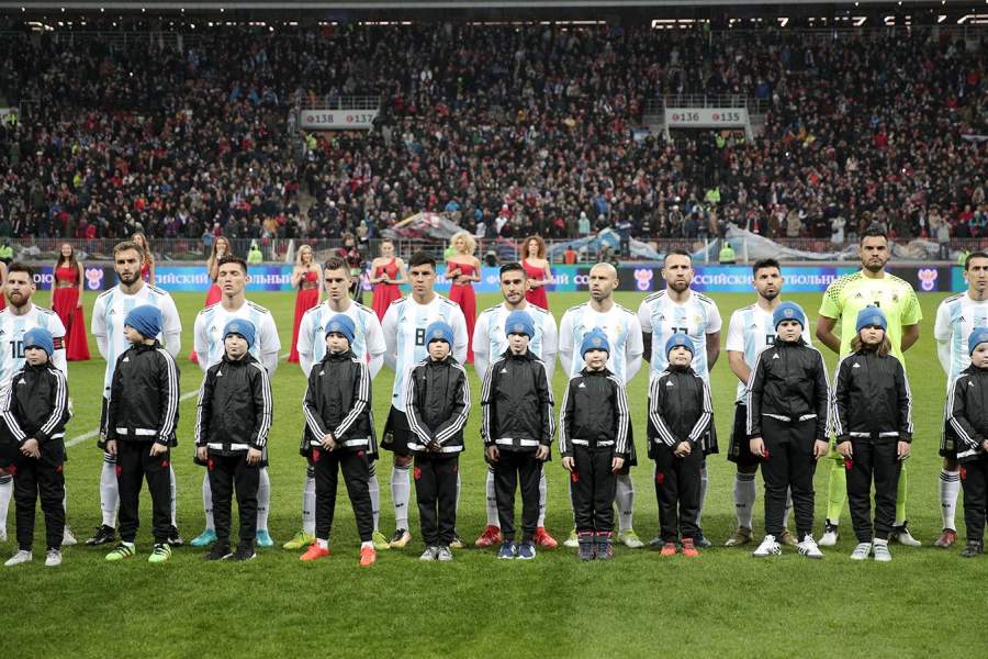 Сборная России по футболу со счетом 0:1 проиграла команде Аргентины в товарищеском матче, который стал первым на стадионе «Лужники» после реконструкции. На фото: сборная Аргентины перед началом игры