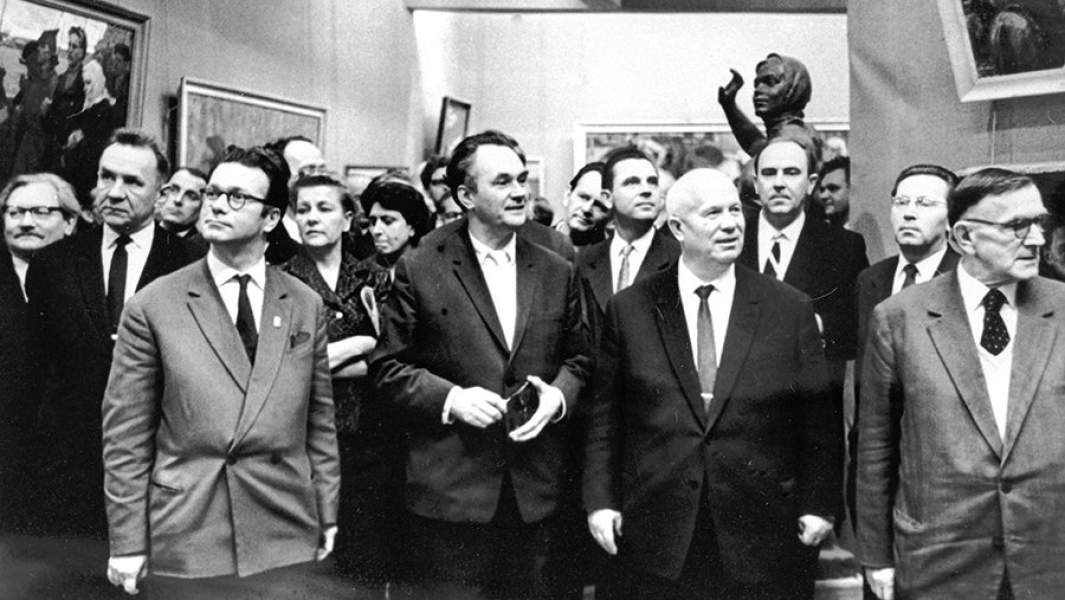 Послереволюционный период в жизни Манежа был наименее ярким — сначала он стал казармой, затем правительственным гаражом. Наконец полвека тому назад, в 1957 году, в нем сделали выставочный зал, разделив пространство на два этажа со множеством помещений. Поначалу он был не особенно популярен, поскольку был непривычен для зрителя, но 1 декабря 1962 года, ровно 55 лет назад, прогремел не то что на всю страну, а на весь мир. И не столько благодаря художественным достоинствам экспонировавшихся здесь работ, сколько из-за экспрессивной реакции на них главного критика Страны Советов, первого секретаря ЦК КПСС Никиты Сергеевича Хрущева.
