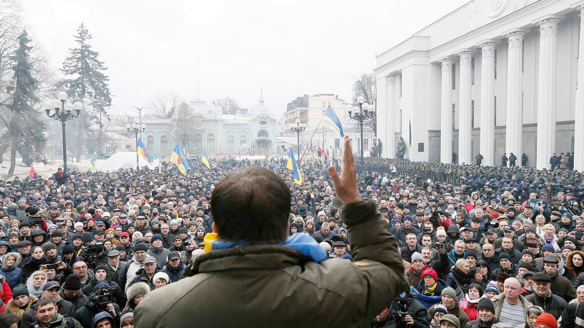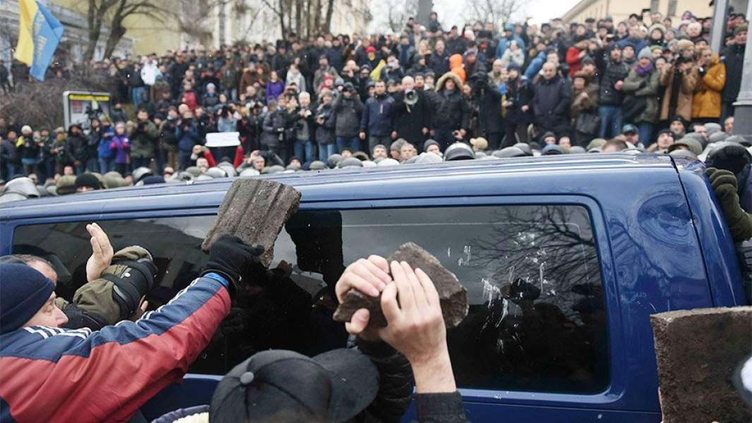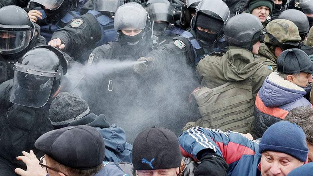 На 3 декабря был назначен «Народный импичмент» как таковой, и в лагере Саакашвили вовсю намекали, что властям страны, в частности президенту, в этот день придется ох как непросто. Впрочем, конкретные сценарии развития событий не обсуждались. Однако вопреки всем ожиданиям нельзя сказать, что в первое воскресенье зимы в центре Киева происходило нечто экстраординарное. Да, людей собралось весьма приличное количество — даже силовики признали 2,5 тыс. протестующих, СМИ насчитали порядка 5–6 тыс. человек, а организаторы так вообще нашли порядка 20 тыс. крайне разгневанных действиями властей граждан. Да, звучали весьма резкие заявления в адрес «барыг» (этим словом сам Саакашвили и его сторонники традиционно обозначают первых лиц Украины); да, был сильный символический ход с торжественным возложением на Аллее Героев «Небесной сотни» (так на Украине называют погибших во время событий в феврале 2014 года, которые привели к госперевороту в стране) плакатов с предвыборными обещаниями президента Порошенко, которые он так не выполнил.
