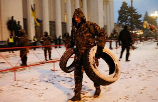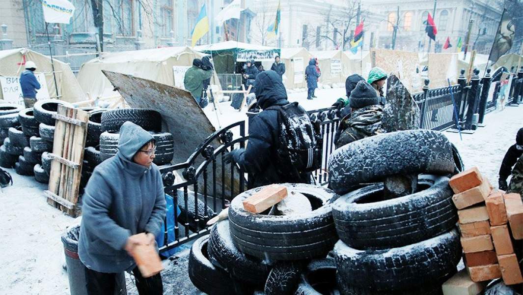 Баррикады и палаточный городок у здания парламента в Киеве