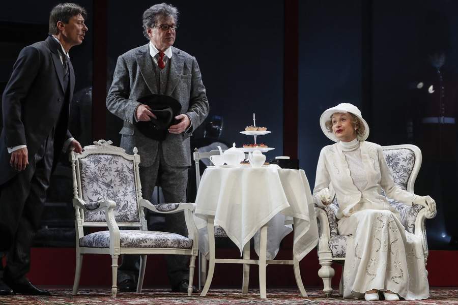 Анатолий Лобоцкий в роли Пикеринга, Игорь Костолевский в роли Генри Хиггинса, Ольга Прокофьева в роли миссис Хиггинс