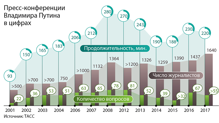В начале пресс-конференции Владимир Путин признался, что он, конечно, захватил с собой документы с текущими экономическими и социальными показателями, однако не хотел бы превращать общение с журналистами в монолог, дав возможность задать как можно больше вопросов. И если в предыдущие годы журналисты пытались привлечь внимание президента яркими надписями на транспарантах, то в этом году выкрикивали вопросы прямо с места.
