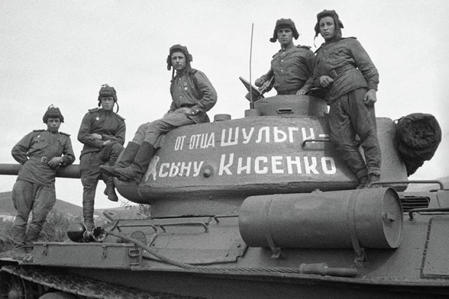 Танк Т-34-85, купленный председателем колхоза им. А.С. Пушкина Покровского района Днепропетровской области Я.Ф. Шульгой на собственные сбережения и переданный своему приемному сыну — лейтенанту И.А. Кисенко. Надпись на борту танка гласит «От отца Шульги — сыну Кисенко», 1943 год