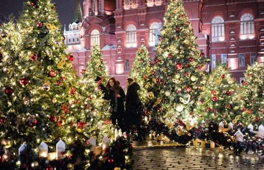 Ну и про простые новогодние радости вроде яркой иллюминации и красочных елочных шаров тоже забывать не стоит. На Манежной площади раскинулся «Волшебный лес» из многочисленных украшенных елок, а прямо на Красной площади вновь установили огромную ледяную горку.
