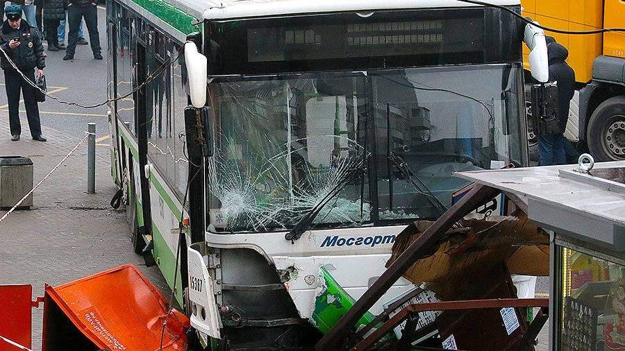 Опубликовано новое видео наезда автобуса на остановку в Москве