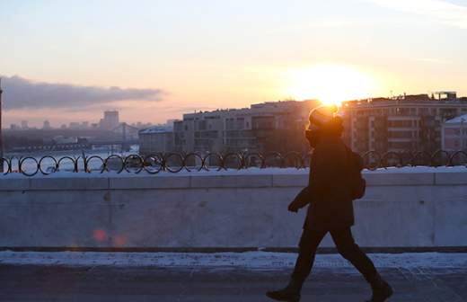 Женщина гуляет по улице во время метели в Лонг-Бич, Нью-Йорк. По прогнозам синоптиков, вечером 4 января в регионе ожидается сильнейший снегопад