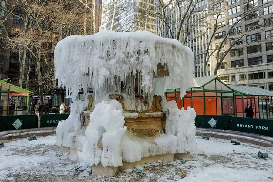 Замороженный мемориальный фонтан Джозефины Шоу-Лоуэлл в Нью-Йорке