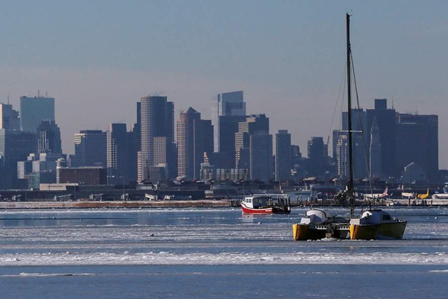 Аномальные морозы сковали среднюю часть США. Температура опуститилась на 11-17 градусов ниже нормы, которая в январе составляет 16 градусов тепла. Национальная служба погоды предупреждает об угрозе переохлаждения под действием сильного ветра на обширной территории страны от южной части Техаса до Канады и от Монтаны и Вайоминга на западе до Новой Англии на севере штата Мэн. На фото: парусник в замерзших водах Атлантического океана в гавани между Уинтропом и Бостоном, штат Массачусетс