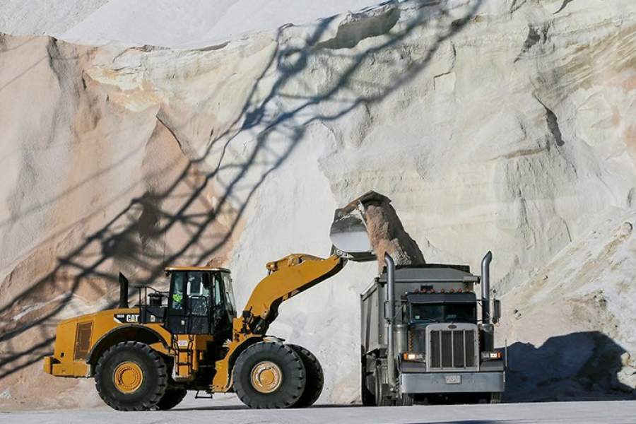Погрузка автодорожной соли в рамках подготовки к аномальным морозам в Челси, штат Массачусетс