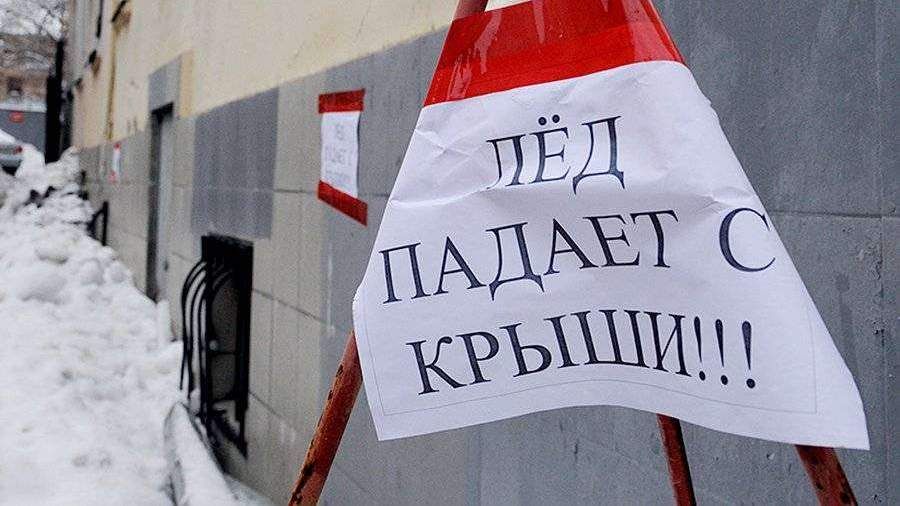 Глыба льда упала с крыши дома в центре Москвы