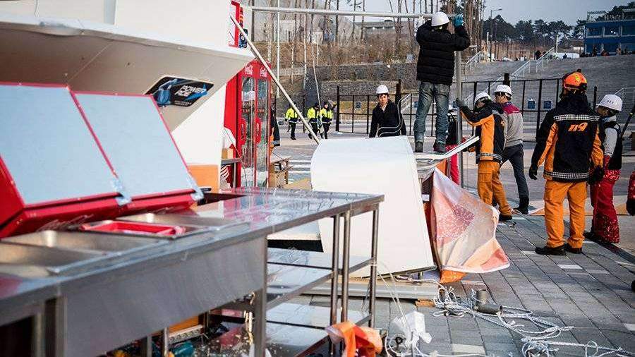 Незначительные травмы в результате ураганного ветра получили 16 человек в прибрежном кластере Олимпийских игр в Пхенчхане.