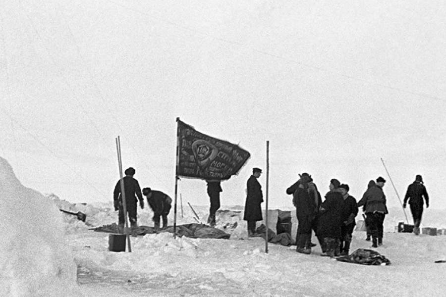 19 февраля 1938 года завершила работу первая в мире дрейфующая полярная станция «Северный полюс-1», руководил которой советский полярник Иван Папанин. На фото: последние минуты существования полярной станции «Северный полюс-1». Полярники укладывают имущество станции перед отбытием на родину