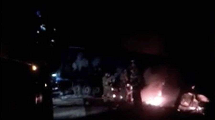 Видео первых минут после дорожно-транспортного происшествия на трассе Джанкой–Феодосия–Керчь в районе села Ленинское в Крыму, где погибли семь человек, появилось в сети.