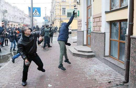 18 февраля украинские националисты разгромили офис Сбербанка России в центре Киева, а также бросили булыжник в окно офиса Альфа-банка на Крещатике по пути к зданию Россотрудничества. Напав на здание центра, радикалы разбили окна и повредили дверь.