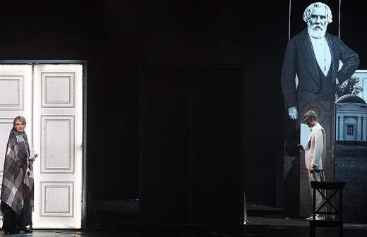 И пусть саркастический Михаил Булгаков увидел в новшестве всего лишь «какие-то клетки, наклонные плоскости, палки, дверки и колеса», идея оказалась жизнеспособной. Спустя без малого 100 лет нечто подобное, хотя и значительно более упорядоченное, воспроизведено на сцене Театра им. Моссовета. Правда, в отличие от собранного из подручных средств спектакля 1922 года, нынешний (судя по основательности конструкции, весьма дорогостоящий) на творческие открытия не претендует. Более того, ставит известного режиссера и хороших актеров в неловкое положение. Потому как вопрос, появляющийся к финалу почти четырехчасового спектакля: «А что, собственно, авторы хотели сообщить миру?», так и остается без ответа.