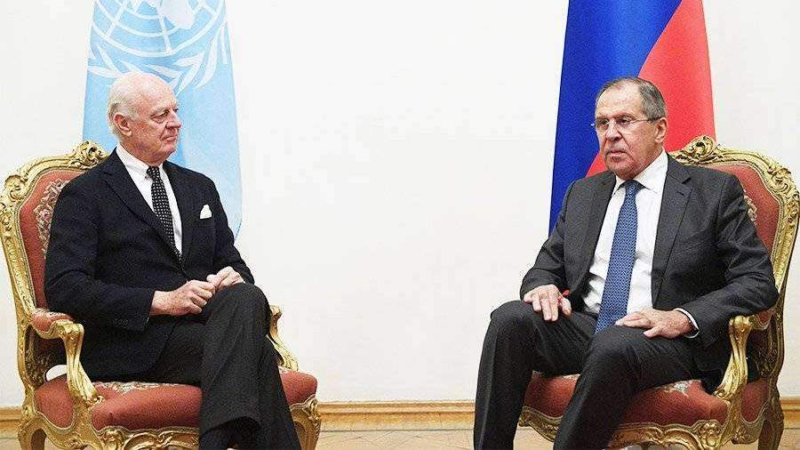 Министр иностранных дел России Сергей Лавров проведет переговоры со спецпосланником Организации Объединенных Наций по Сирии Стаффаном де Мистурой.