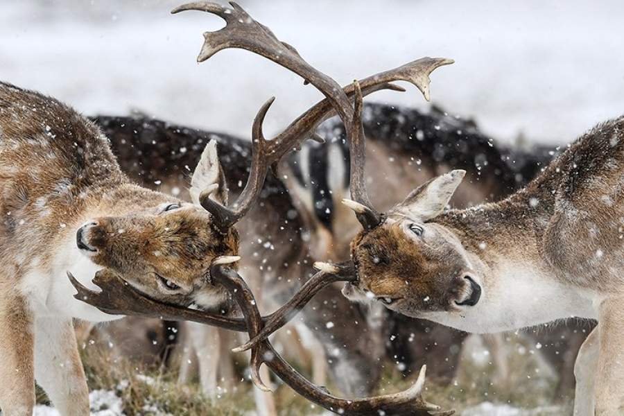Олени в лондонском парке Ричмонд во время снегопада, 28 февраля