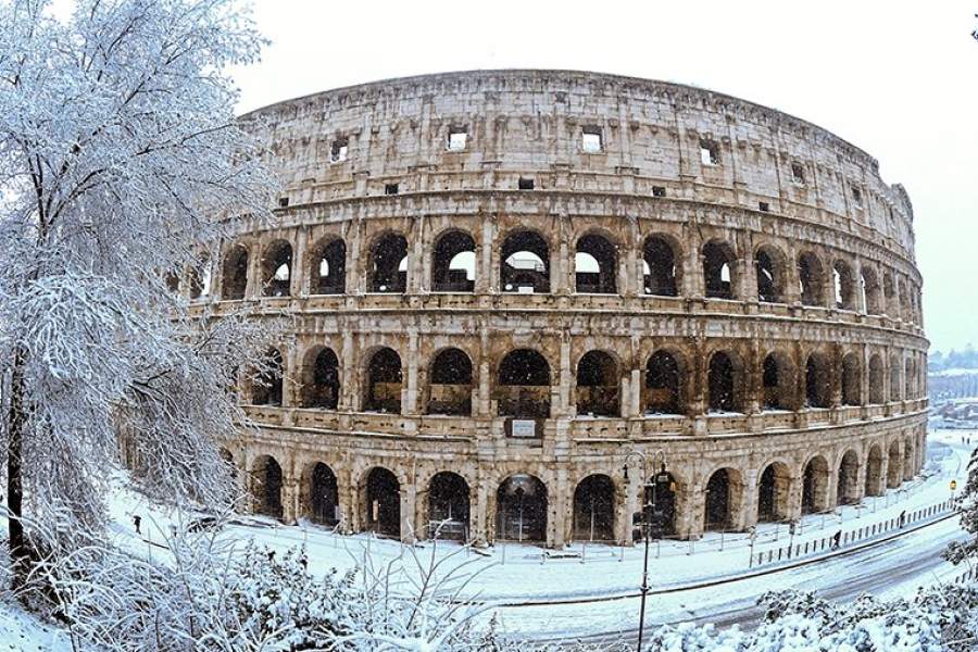 Колизей после сильного снегопада, Рим, 26 февраля