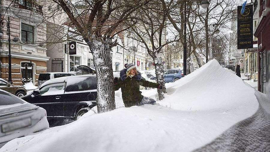 В преддверии Международного женского дня Владивосток засыпало снегом: сильнейший снегопад начался в ночь на 8 марта и по состоянию на 7:00 высота снежного покрова превысила 20 см.
