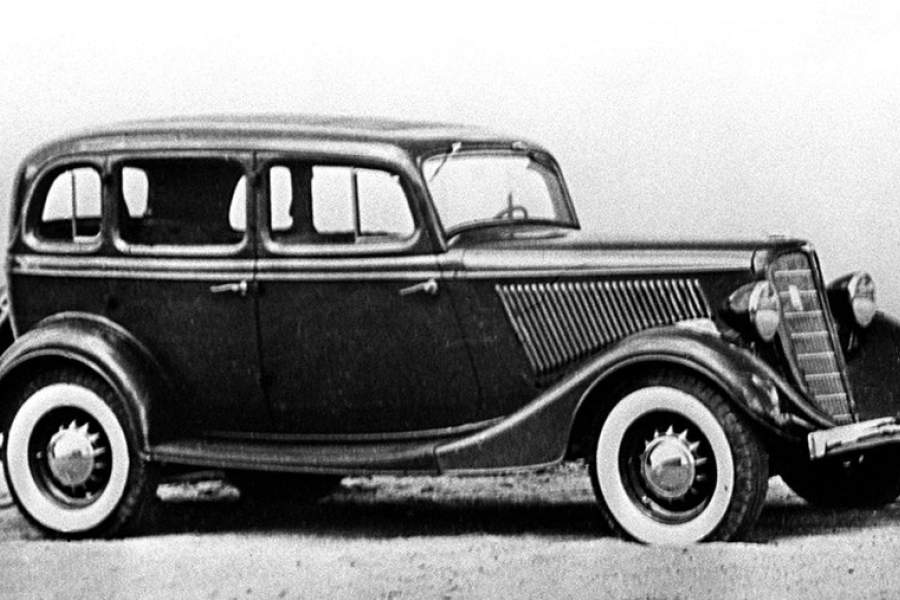 16 марта 1936 года с конвейера Горьковского автомобильного завода сошла первая советская легковая автомашина — лимузин марки «М-1». На фото: ГАЗ М-1, 1938 год
