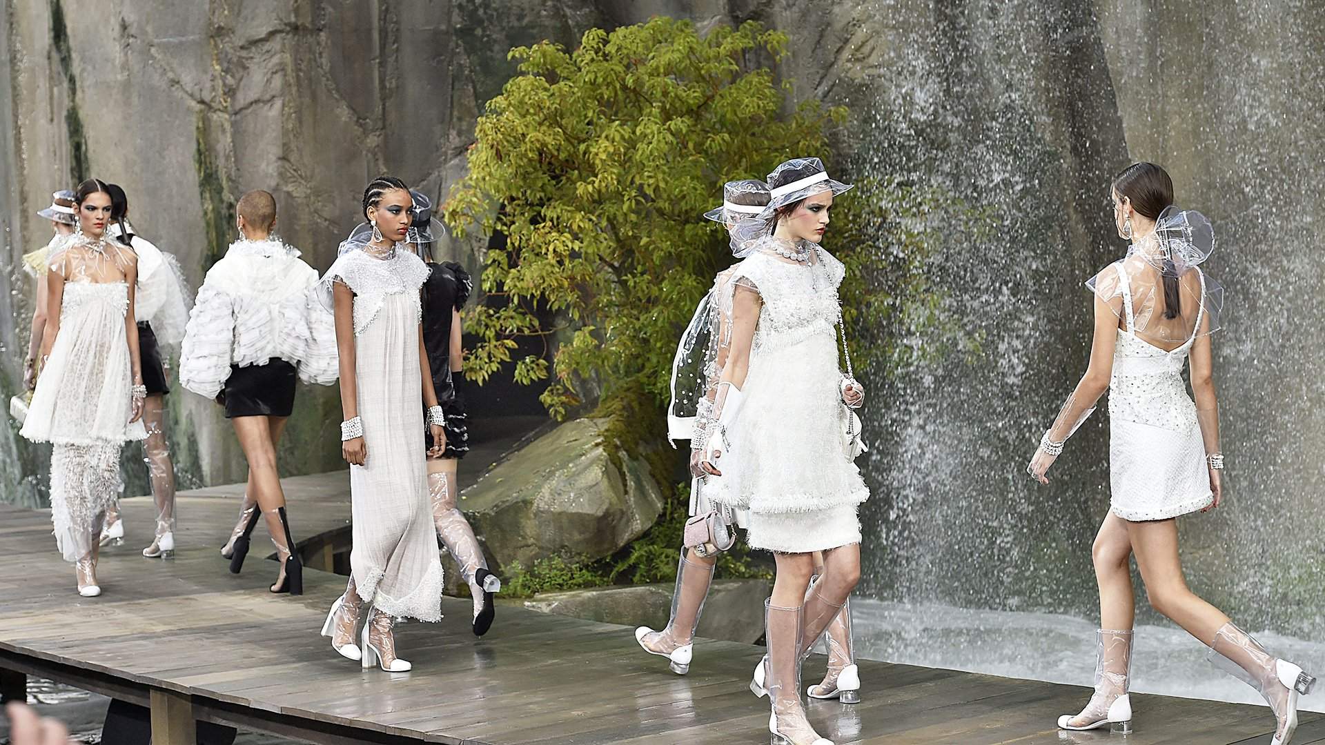Трудно сказать, читали ли модельеры в детстве «Новое платье короля» Андерсена, но среди их клиентов наивный мальчик, который крикнет «а король-то голый!», найдется вряд ли. Всё же одним из главных энтузиастов прозрачности оказался главный царственный старец мира моды — в весенне-летней коллекции Chanel у Карла Лагерфельда прозрачны не только плащи, но и сапоги, перчатки и шляпки.