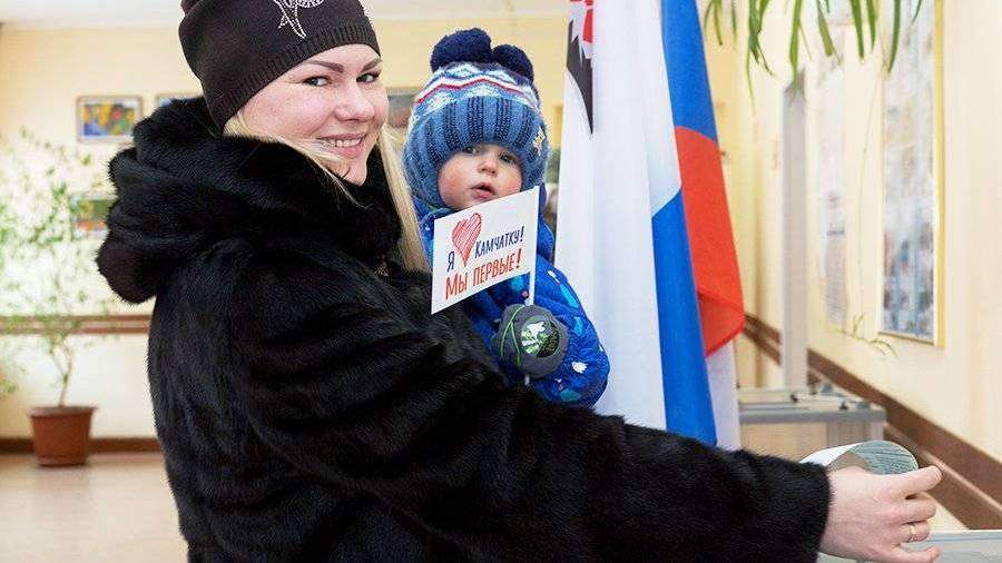 Жители Камчатского края активно голосуют на выборах президента России, несмотря на 22-градусный мороз и сильный ветер.