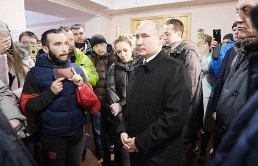Во вторник утром Путин прибыл в Кемерово и сразу же направился к месту трагедии, чтобы возложить цветы к стихийному мемориалу. Он также осмотрел фасад сгоревшего здания.