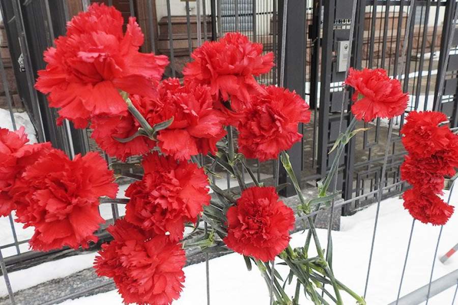 Цветы, принесенные жителями Киева к российскому посольству