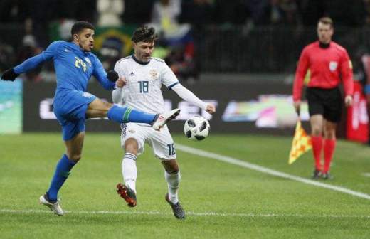 Первая контрольная встреча состоялась в Москве на легендарном стадионе «Лужники». Сборная России в первом тайме смогла сдержать натиск бразильцев, но уже во второй половине матча пропустила три мяча за 13 минут. При этом у нашей команды так и не вышло покорить ворота южноамериканцев — игра закончилась с сухим счетом 3:0.