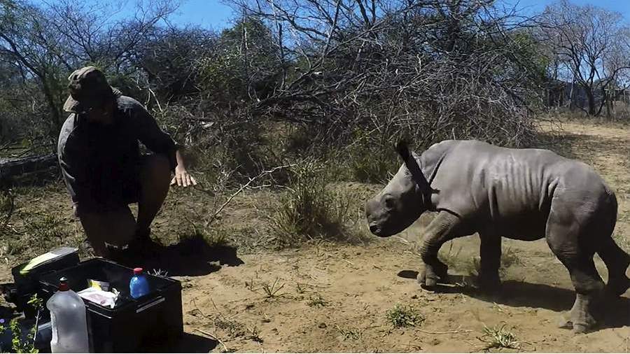 В ЮАР храбрый маленький носорог бросился защищать мать от ветеринаров. Врачи хотели только залечить рану на ее ноге. В результате «нападения» все остались невредимы, а маленький носорог стал звездой Интернета.
