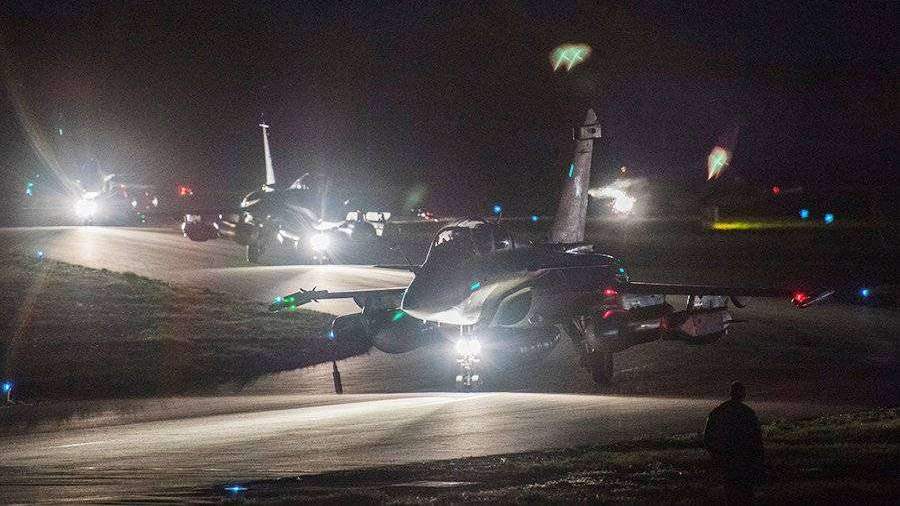 В ударе по Сирии были задействованы самолеты ВВС США В-1B, F-15, F-16, а также самолеты ВВС Великобритании «Торнадо» над акваторией Средиземного моря, корабли ВМС США «Лабун» и «Монтерей» из акватории Красного моря. Участие французской авиации российская система противовоздушной обороны на базах Тартус и Хмеймим не зафиксировала.