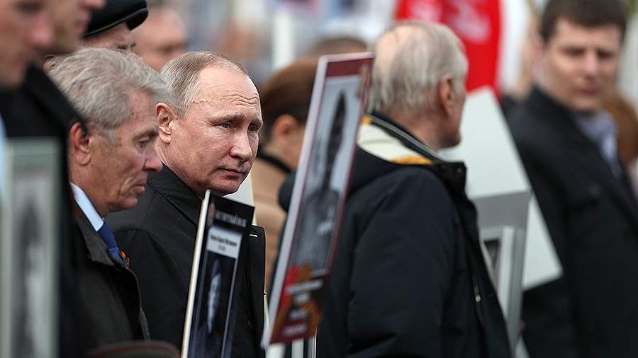Как и другие пришедшие на акцию граждане, президент нес в руках портрет родственника, участвовавшего в Великой Отечественной войне, — своего отца. Владимир Спиридонович Путин участвовал в боях и получил тяжелое ранение на Невском пятачке — важном плацдарме, который захватили и удерживали советские войска во время битвы за Ленинград.