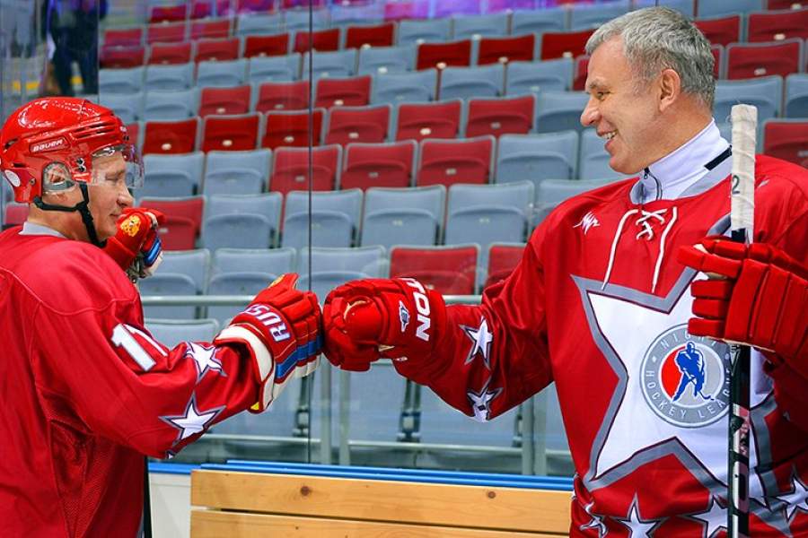 С Владимиром Путиным во время товарищеского хоккейного матча между командами «Звезды НХЛ -1» и «Звезды НХЛ - 2» в Сочи в 2014 году