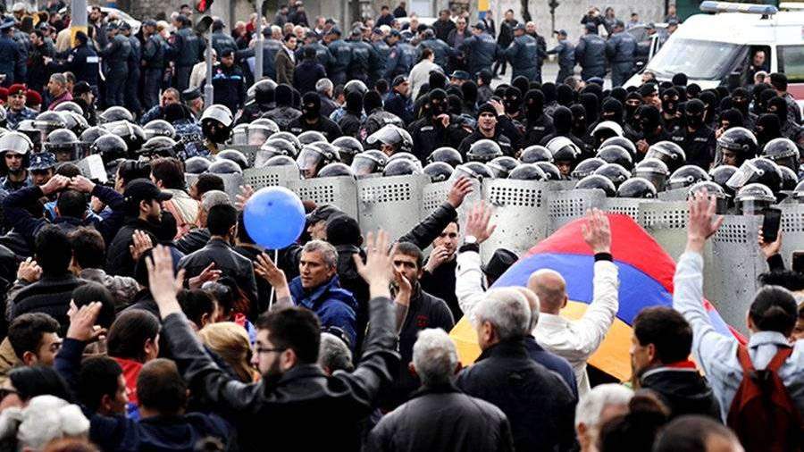 Полиция Армении начала разгон демонстрации в Ереване на проспекте Арцах. По некоторой информации, задержан лидер оппозиции, депутат парламента Никол Пашинян.