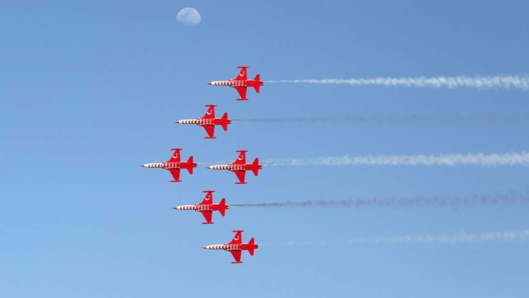 От размышлений о геополитике зрителей салона, впрочем, отвлекало шоу: полеты турецкой пилотажной группы на истребителях F-5 стали украшением салона. Интерес привлекла также демонстрация в воздухе вертолета Т-129 ATAK — турецкой версии итальянского А-129 «Мангуста», и полеты ряда спортивных и легких машин. Основное шоу, впрочем, всё равно приходится на выходные — когда салон открыт для всех, а не только для бизнесменов и журналистов.