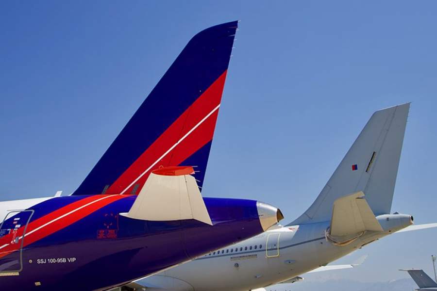 Лайнер «Сухой Суперджет 100» в бизнес-версии (слева) и транспорт-заправщик Королевских ВВС А330 MRTT (справа)