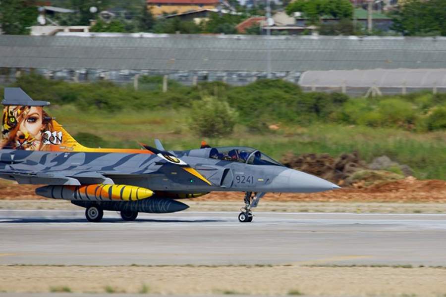 Шведский многоцелевой истребитель четвертого поколения Сааб JAS 39 «Грипен» из состава 211-й эскадрильи ВВС Чехии
