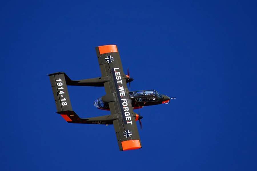 В ознаменование столетия окончания Первой мировой войны пилотажная группа Bronco Demo Team из Бельгии украсила самолет маками и памятными надписями