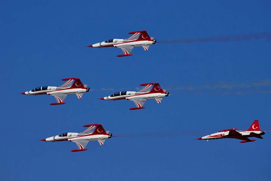 Истребитель F-5 пилотажной эскадрильи турецких военно-воздушных сил «Турецкие звезды»