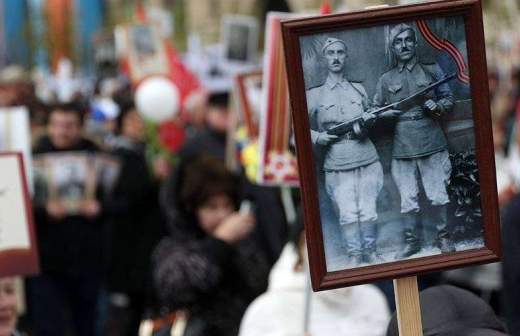По ее словам, централизованная колонна людей с портретами своих родственников проследовала под песни военных лет к памятнику «Советский сокол». Участники мероприятия почтили минутой молчания память героев войны и запустили в небо символический салют из лепестков роз.