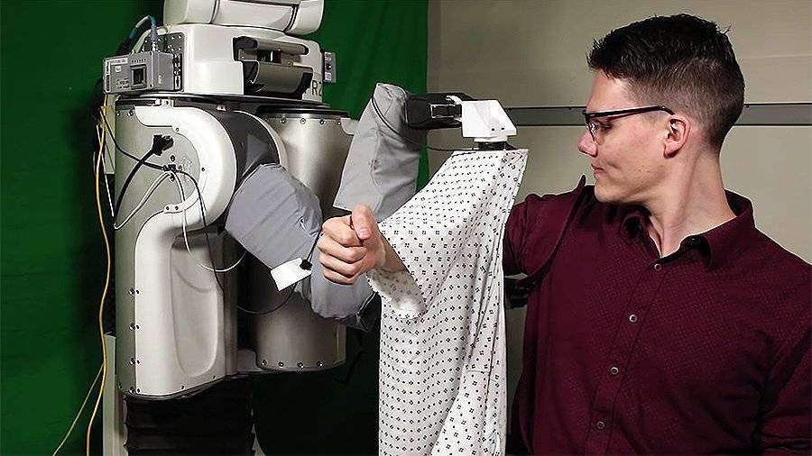 Инженеры Технологического института Джорджии создали робота PR2, способного одевать людей. Умная машина уже умеет облачать человека в больничную робу — создатели надеются, что PR2 поможет пациентам в больницах и хосписах.