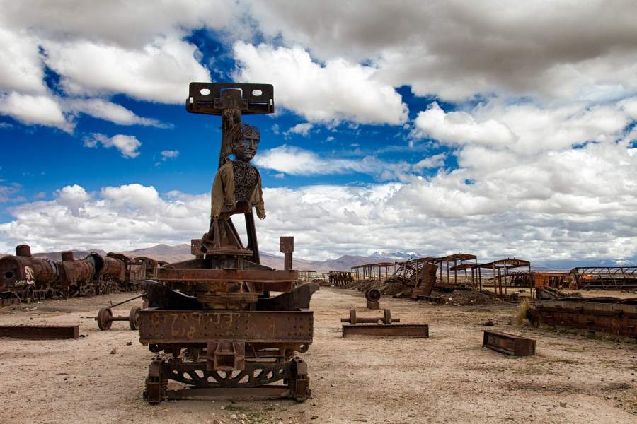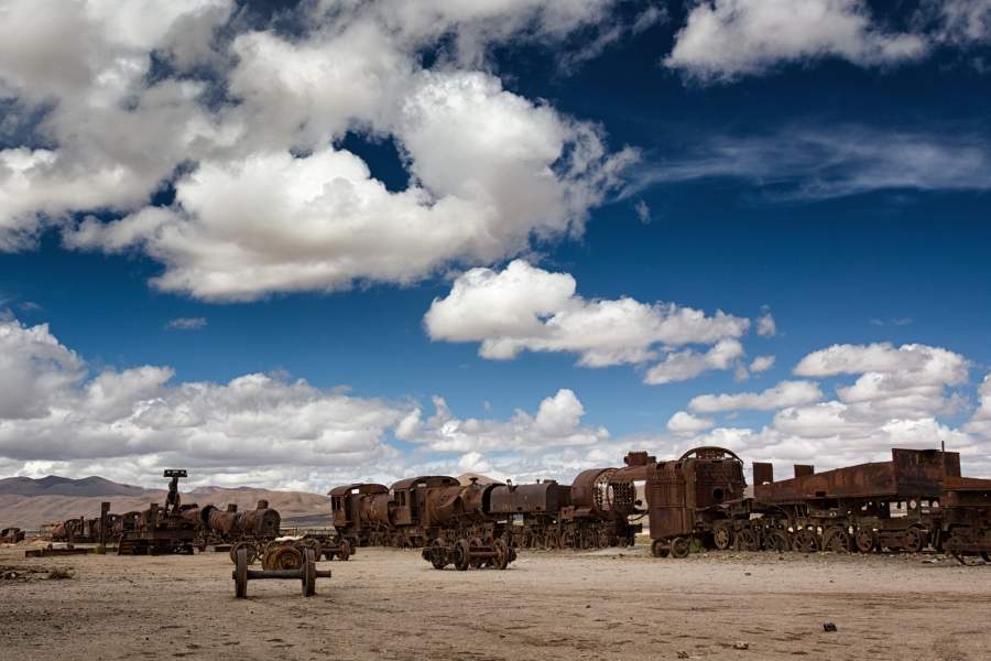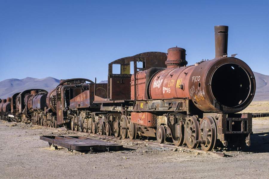 В боливийском городке Уюни на юго-западе страны существует необычное кладбище. Здесь уже больше половины столетия ржавеют старые паровозы, брошенные хозяевами после закрытия соляных шахт в конце 1940-х. Остовы гигантских машин давно превратились в туристский аттракцион, который не обошел стороной и портал iz.ru