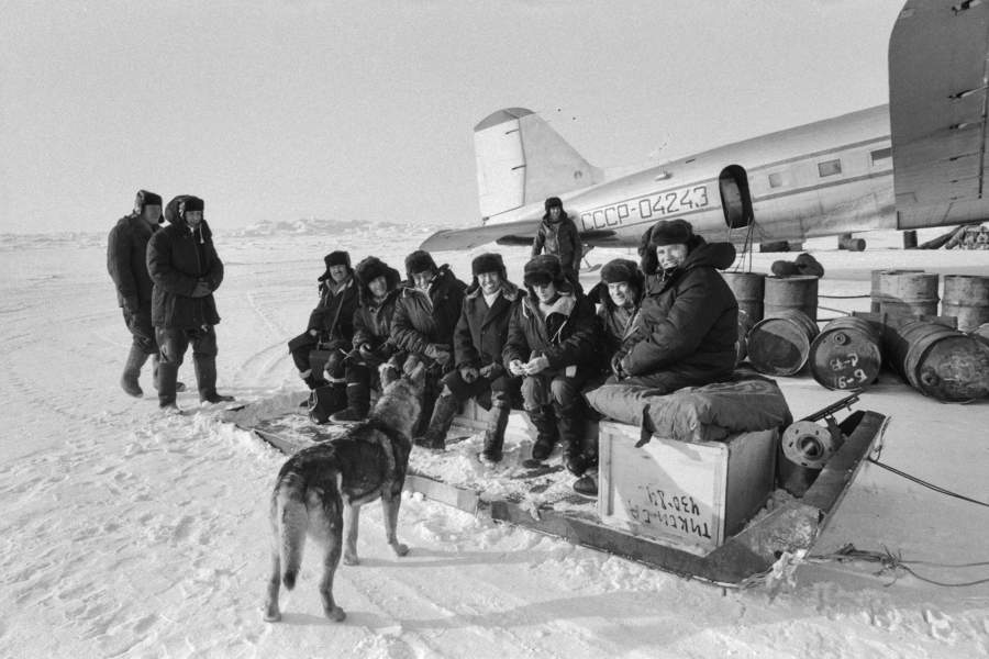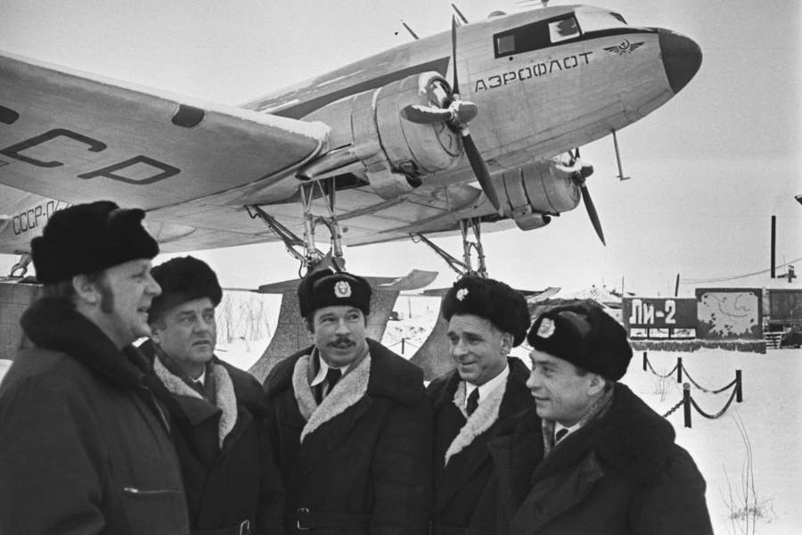 С начала 1970-х доставлять участников экспедиции к месту дрейфа начали с помощью судов, а не самолетов. Но полярная авиация по-прежнему активно использовалась для обслуживания нужд дрейфующих станций. Отвечали за это в основном летчики Колымо-Индигирского авиапредприятия. На фото: полярные летчики на станции «Северный полюс – 23», 1977 год